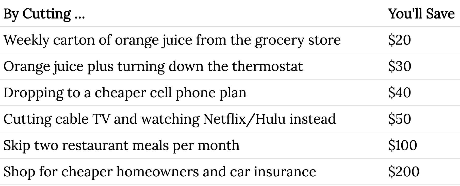 Adjust to this lifestyle for a month. You’ll hardly feel a difference.